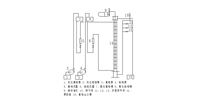 4、待分散相在塔顶凝聚一定厚度的液层后,通过连续相的出口U形管上的界面调节阀,调节两相的界面于一定的高度。