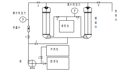 1.先了解整个实验的流程,对各个设备及阀门有一定的了解。配制好混合液(可以为污水、淀粉悬浮液、皂化液等)。需注意所配混合液浓度不应过浓,否则会影响膜的使用寿命。